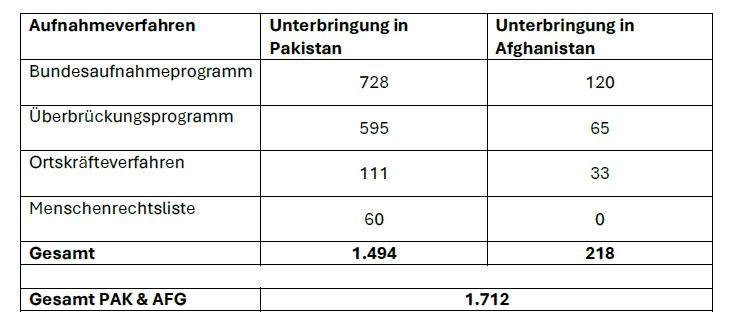 • Zu der Frage, ob auch die Aufnahmezusagen nach §22 (zu denen sowohl die Ortskräfte wie auch alle aus dem Überbrückungsprogramm und von der Menschenrechtsliste zählen) rechtsverbindlich sind, wird in den kommenden Wochen eine Entscheidung vom Bundesverfassungsgericht erwartet
