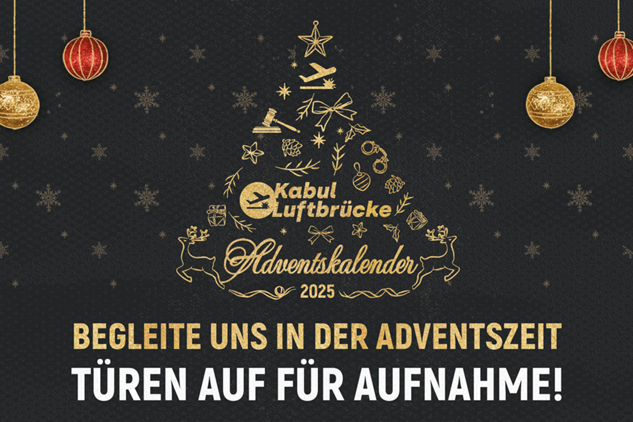 In diesem Advent rücken wir die Menschen in den Mittelpunkt, deren Sicherheit weiterhin von politischen Entscheidungen abhängt. Vom 1. bis 24. Dezember öffnen wir täglich ein Türchen und zeigen, was normalerweise verborgen bleibt: Familien, die seit Jahren auf ihre Einreise warten, Frauen und Kinder, die in Pakistan in ständiger Unsicherheit leben, juristische Erfolge, mit denen wir rechtswidrige Verzögerungen stoppen, sowie Momente, in denen Spenden unmittelbar wirken.