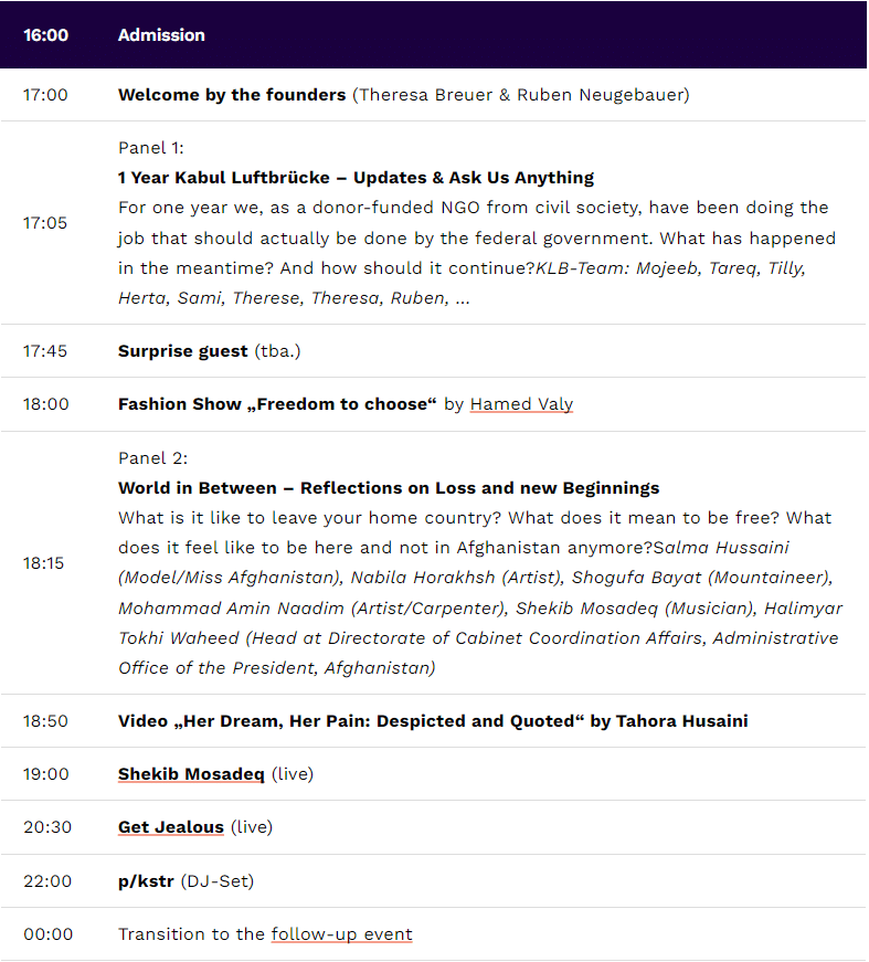 Kabul Luftbrücke ist eine Initiative der Zivilgesellschaft, die Verantwortung übernimmt und gefährdete Personen aus Afghanistan evakuiert. Seit der Gründung vor einem Jahr ist es uns gelungen mehr als 2700 Menschen in Sicherheit zu bringen.